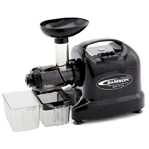 In a continuing effort to make high quality, functional, easy-to-use and affordable juicing technology Samson Brands features the Samson Advanced Multi-Purpose Juice Extractor. The new Samson Advanced number of juicers incorporates newer, studier plus much more efficient technology which makes operation a pleasure for brand new users also as for aficionados that juice repeatedly a day. The Samson Advanced is all to easy to use and simple to clean. The Samson Advanced is more than only a juicer. Choose an attractive color that blends into your kitchen. The Samson Advanced is obtainable in Almond, Black, Chrome-colored, and White. Highlights - Single Gear Slow Rotates at 80 RPM to make certain high quality nutritional juice, FDA approved GE Ultem is used for that augur and screens causing them to be 8 times stronger than traditional juicer parts, the stainless steel Juicing Screen is fully encased with GE Ultem, Juices a large variety of vegetables, grasses and fruits, excellent for Wheatgrass and Leafy Greens - Less foam than twin gear juicers, Simple assembly with - quick lock - style attachments, quick and simple cleaning, top rack dishwasher safe (avoid drying cycle), make sorbets, applesauce, nut butters, baby food and frozen desserts, adjustable pressure control to optimize juice yield, continuous juicing with containers for juice and pulp, convenient carrying handle, easy operation using push buttons - On, Off and Reverse, Full manufacturers 15 year warranty on motor and operational parts. The next items are included - Samson Multi-Purpose Juicer Motor, Augur, Drum, Drum Cap, Juicing Screen, Mincing Cone, Cups for catching juice or pulp (2), Sieve (1), Cleaning Brush, Pusher / Tamper, Juicing Nozzle, Mincing Nozzle, Noodle Nozzles (2), Pasta Nozzles (2), Color Cook Book and Operations Operation Manual and Extra Fuse